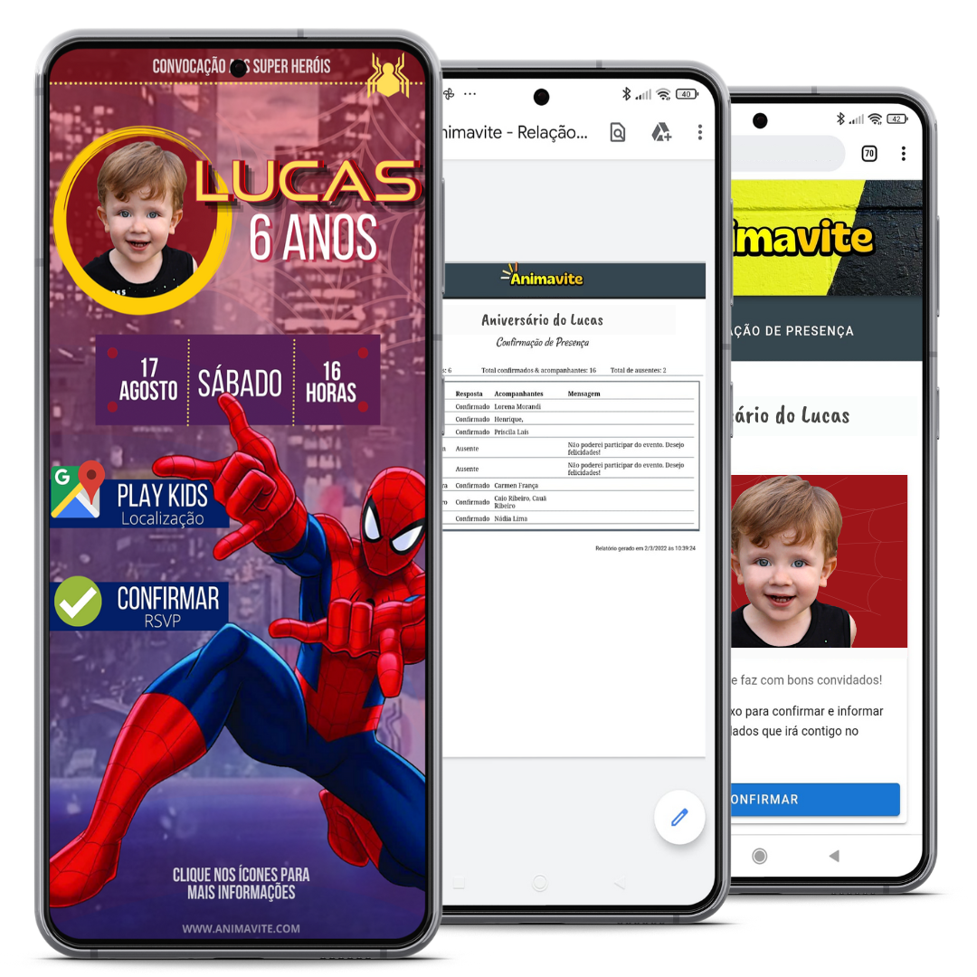 Convite Interativo com tema Homem-Aranha, Hulk, Homem de Ferro e Super-Heroís